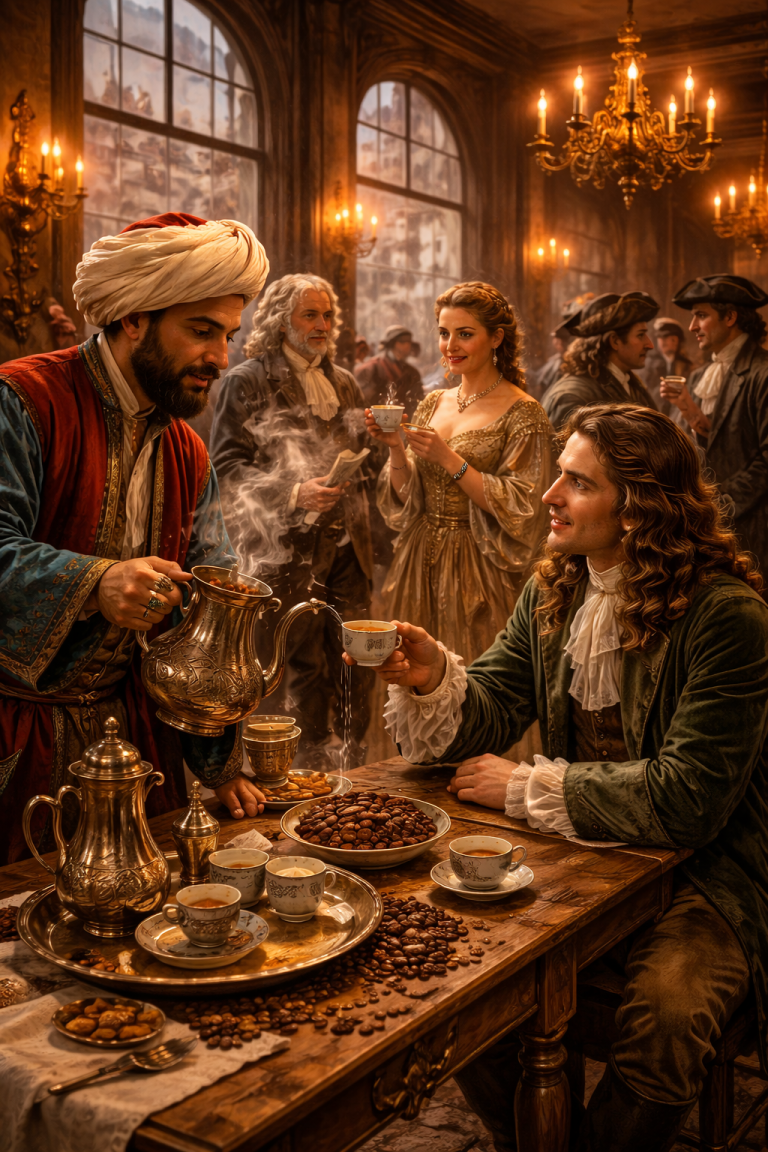 Die ersten Kaffeehäuser entstanden in Städten wie Venedig, London und Paris. Sie entwickelten sich zu wichtigen Treffpunkten für Intellektuelle, Händler und Politiker und wurden oft als „Penny Universities“ bezeichnet.